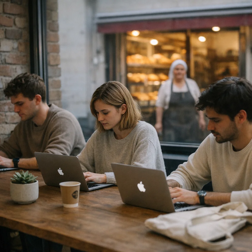 There is hypocrisy sewn into the minimal aesthetic: startups promise public-mindedness while renting glossy offices by the Späti that host designer plants and nonfunctional espresso bars. A Turkish bakery across the street keeps its shutters down more often these days, watching a new storefront curate minimalism into a workshop about “intentional consumption.” The bakery’s owner, who has made bread here for decades, is learning a new language of polite indifference.